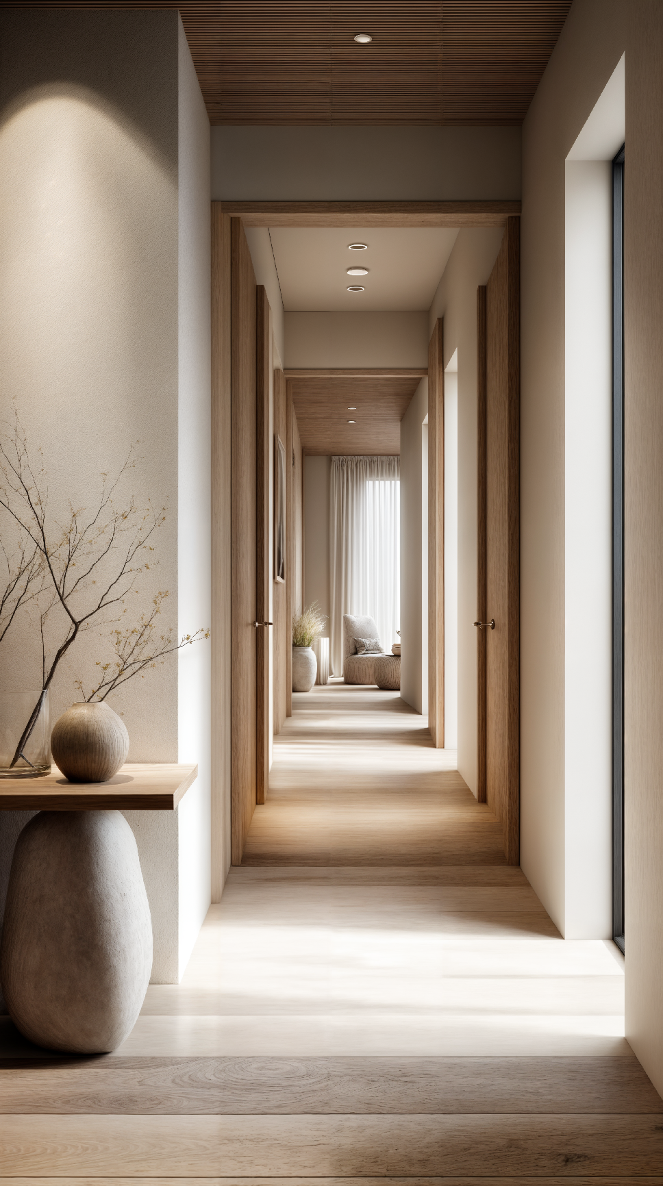 ДЕКОР минималистичный, функциональный: керамические вазы ручной работы и органичной формы, лаконичные светильники. Мягкий текстиль — пледы, простые ковры. Растения допускаются, но умеренно — чаще в японских или скандинавских скульптурных горшках.