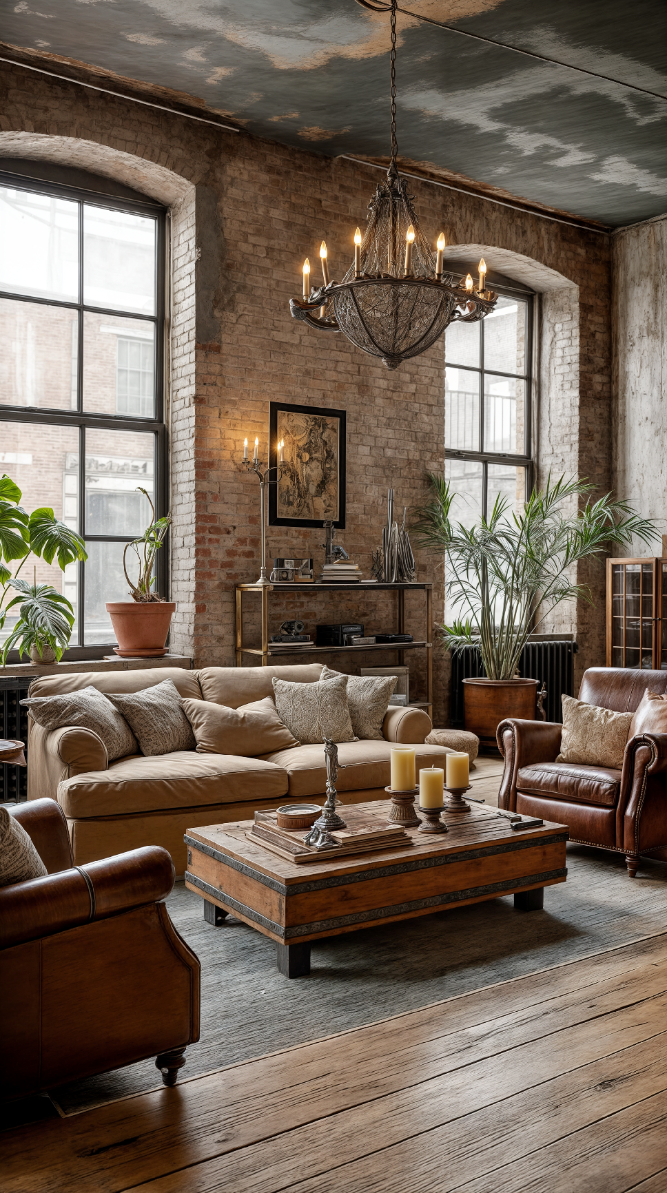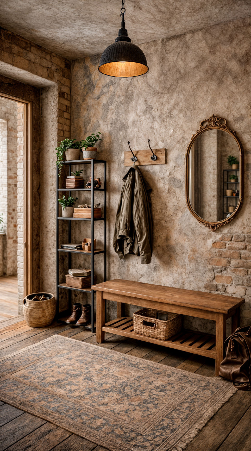 ОТДЕЛОЧНЫЕ МАТЕРИАЛЫ: только натуральные, подчеркивающие собственную фактуру. Вообще, фактура тут ОЧЕНЬ важна: необработанная кирпичная стена; потрескавшаяся и обваливающаяся штукатурка; неокрашенная древесина; натуральный камень. Металл - матовые серебро, бронза, латунь.
